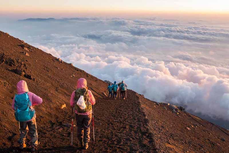 There is an official climbing season that begins in mid July and until mid-September during which periods the mountain peak is usually free of snow. This is when the trails and mountain facilities are open and access by public transportation is straightforward. The specific dates depend on which trail you want to climb and change from year to year based upon the mountain conditions.