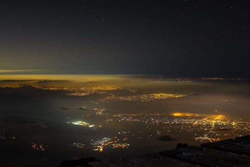 As the peak us usually well above the clouds, the sunrise is nonetheless spectacular to watch from the peak, even on cloudy days when the land far below is nowhere to be seen. It’s more likely to be cloudy than not for most of the climbing season, so this is what people should expect and be satisfied with and if they happen to summit on a day with crystal clear skies and views for hundreds of km over the Tokyo (160km away) and the sea of Japan, then this is a special bonus.