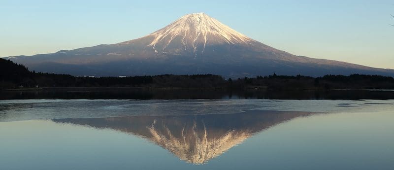 The famous outline of Mt Fuji has long been an artistic inspiration, such as Hokusai’s famous 36 views of Mt Fuji collection of edo-era ukiyoe wood block prints Few other mountains are as photogenic, in part due to the lakes surrounding Mt Fuji, several of which offer incredible photo opportunities if the skies are clear. One tip to get the best change of snapping a photo like the below is to get up just after sunrise and try get some photos before breakfast when the air is most likely to be clear and humidity is lowest meaning your photo will have less haze to desaturate the image.