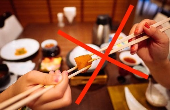 - Chopstick Misuse: Don’t stick chopsticks upright in a bowl of rice, as it resembles a funeral rite. Also never pass food from one set up chopsticks to another, as this is also only done at funeral ceremony when passing the bones of a cremated person.