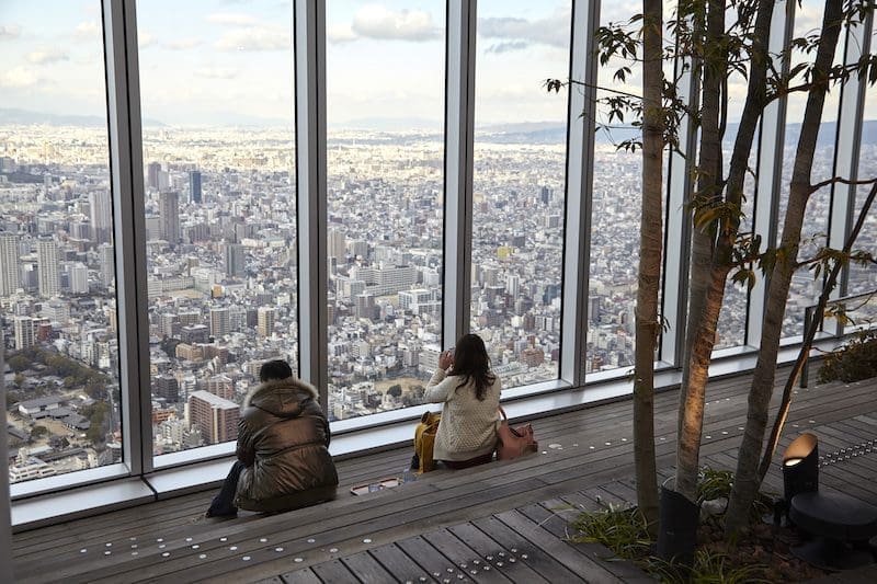 There are many benches, steps and places to just sit down and watch the world go buy at the top of Abeno Harukas.