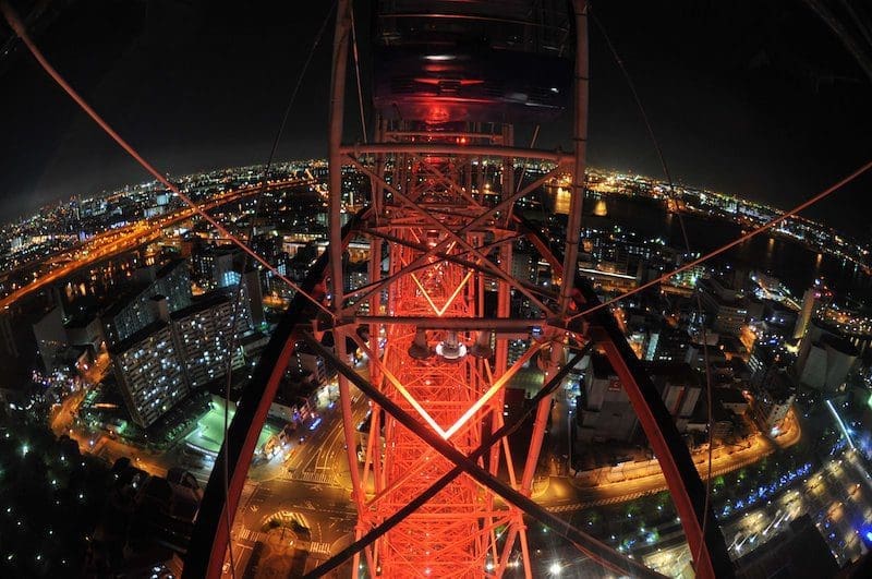 This ferris wheel is located right next to the Osaka aquarium (which was the largest indoor aquarium in the entire world when it opened and still regularly feature 12 metre long whale sharks in its primary tank).