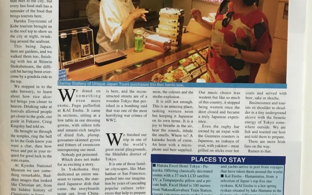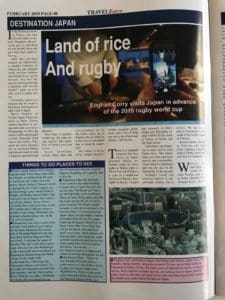 In 2018, UJT’s founder Darina Slattery led a group of Irish Travel Media to inspect Japans Rugby World Cup locations in Fukuoka, Kobe, Yokohama & Tokyo, co sponsored by Finnair. Travel writer Eoghan Corry tells his tales in Travel Extra at the recent Holiday World Show.