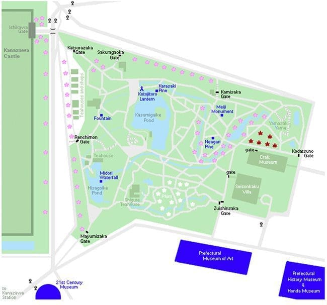 Of the three famous gardens in Japan, Kenroku-en is said to best showcase winter beauty; but features a variety of flowering trees which provide the garden with a different look for each season. Whilst there are times of peak bloom in spring and so on, visitors can appreciate its stunning views during any month of the year.