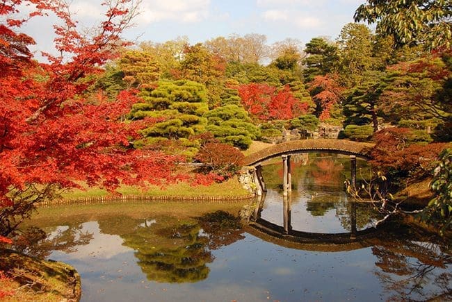 In Autumn during Koyou (changing of the leaves) period, the garden truly becomes breathtaking and offers unrivalled views of the Autumn leaf colours along its many paths and bridges.