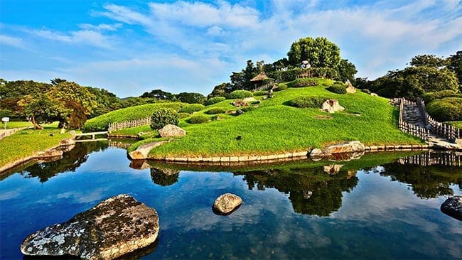 Located on the north side of Okayama Castle, the Korakuen was completed in 1700 and incorporates the surrounding hills and castle into the design.