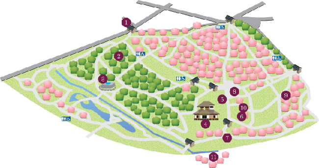 There are over 100 different species of Ume (plum) trees in the 13 hectres of garden grounds, each with their own variation of white, pink and red colouration, spread throughout half the garden.